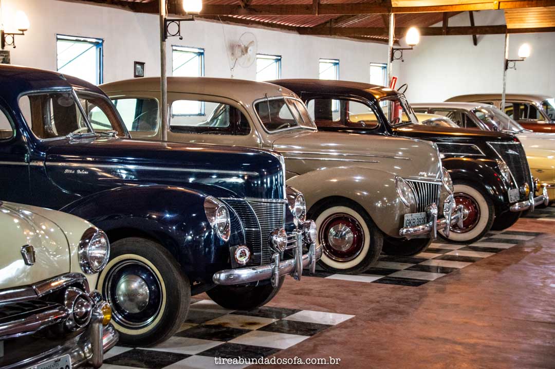 Você também vai encontrar o raro Renault Fregate 1953, o clássico Austin Mini e até nacionais, como o Simca Chambord e DKW Vemag.